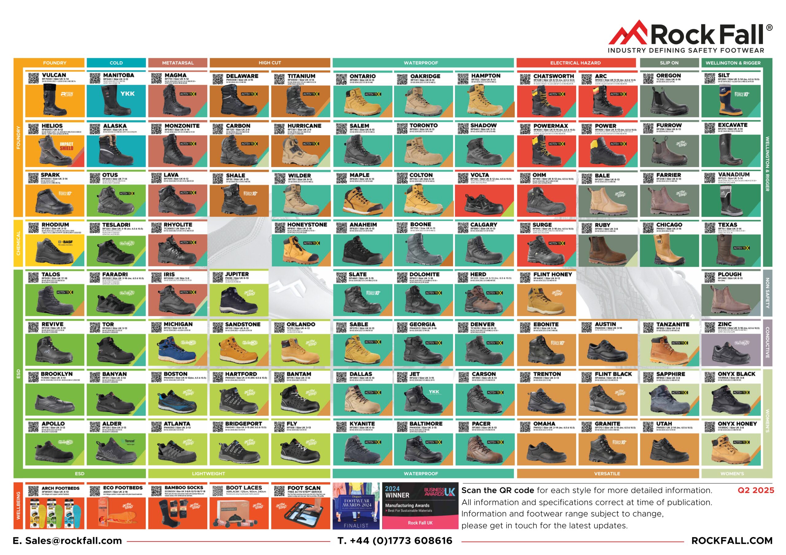 Proud of their British heritage, Rock Fall continues to lead in health and safety by developing industry-defining safety footwear. Their partnerships with world-leading component brands enable them to create products that provide protection across various environments while maintaining a focus on comfort and durability.